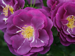 Róża powtarzająca kwitnienie, o wyjątkowym kolorze, który z odległości można uznać za niebieski.